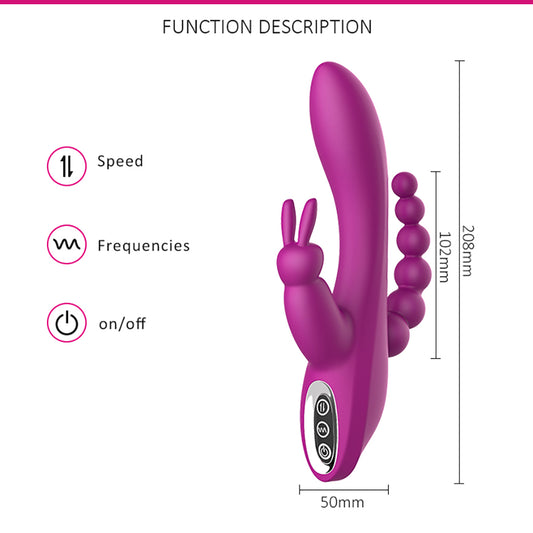 3 in 1 Rabbit Vibrator Clitoral Anal Probe Vaginal Vibrator Dildo Beads
