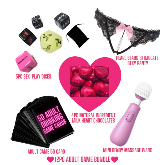 12PC Adult Bundle Sexy Lace Crotchless Knicker, Vibrator And Dice & Chocolates Set