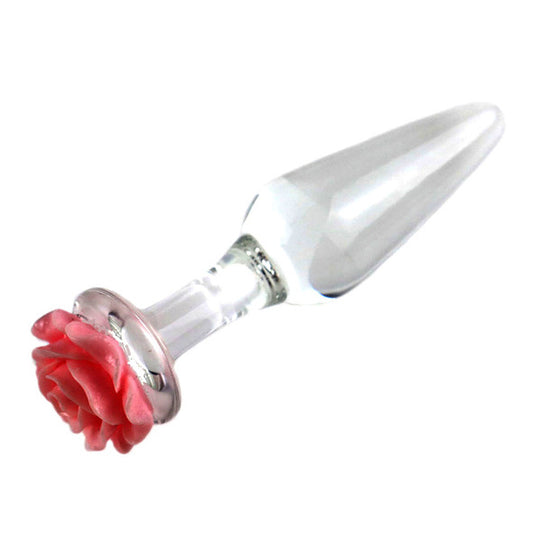 Pink Red Rose Flower Anal Butt Plug Clear Glass Dildo