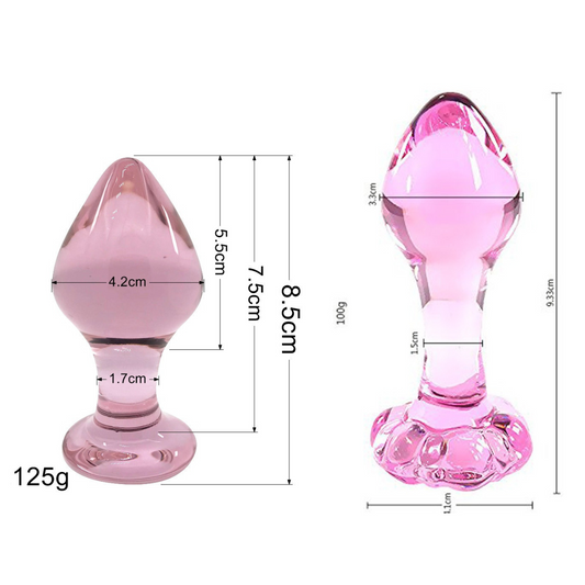 Pink Anal Butt Plug Glass Dildo – Flower Base and Flat Base