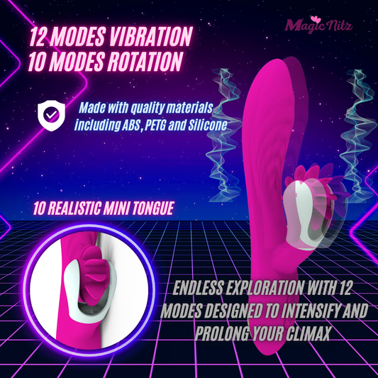 Stroking Rabbit Vibrator G-Spot Massager Clitoral Licking Tongue Toy