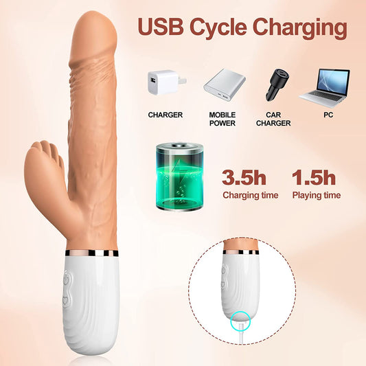 Telescopic 9.8 Inch Thrusting Dildo Rabbit Vibrator 12 Modes 3 Speeds 1 Thrusting Mode